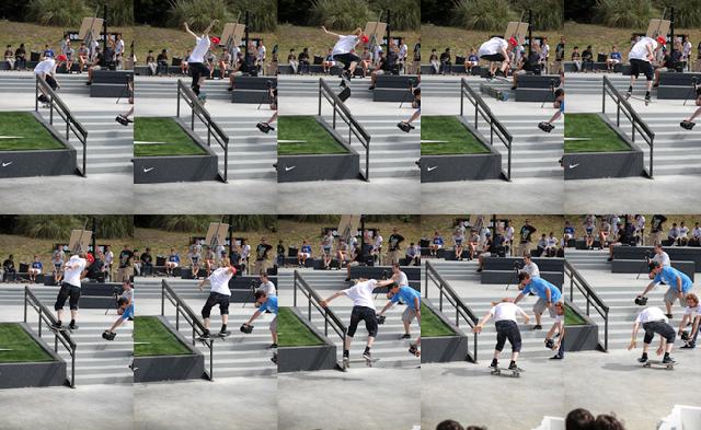 Ce jeudi 11 août, sur la street plaza de la Nike Roundhouse, c'était le Cash for Tricks version pro. Des riders de toute l'Europe avaient fait le déplacement pour se partager 3000 euros de prize money. Finalement, ce sont des Français qui ont raflé le pactole. Max Genin a attaqué très fort en plaquant switch tre, back nose blunt et hurricane en moins de deux minutes soit 300 euros, auxquels il ajoutera 400 euros supplémentaires. Adrien Bulard a littéralement masterisé le contest et s'en sort avec 900 euros en petites coupures. Niveau européen, on retiendra les belles performances du Tchèque Marek Zaprazny, très à l'aise avec les nollie flips sur le Carlsbad et du Hollandais Tim Zon, blessé au talon mais qui a quand même scoré sur le rail.